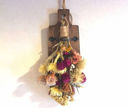 ドライフラワーを使ったおしゃれなスワッグを1つ作ります。