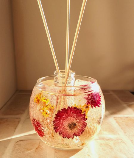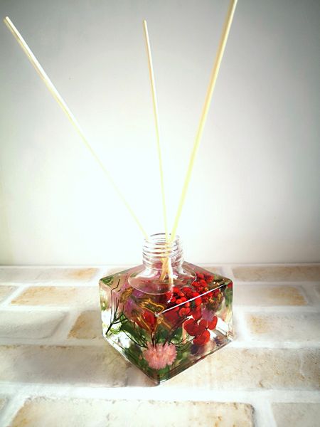 お好きなドライフラワーとジェルキャンドルでディフューザーを1個作ります。